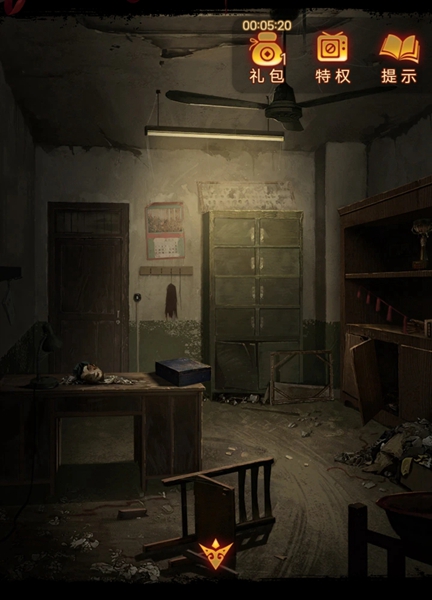 3。根据右边椅子上的线索,拿到右边前面消防柜里的灭火器,用它扑灭舞台上的火。