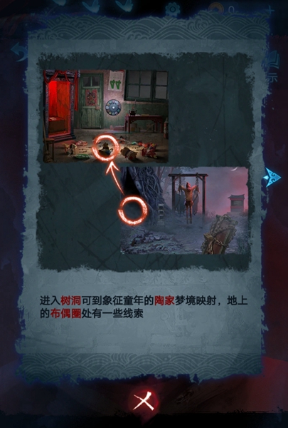 1。进入树洞,可以映射出象征童年的道士们的梦境。地面上的傀儡圈里有一些线索。