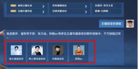 王者荣耀如何获取主播语音包?游戏中有很多有趣的语音包。玩家收到后,可以在游戏中使用它们与其他玩家互动。有些语音包是一些主播的经典台