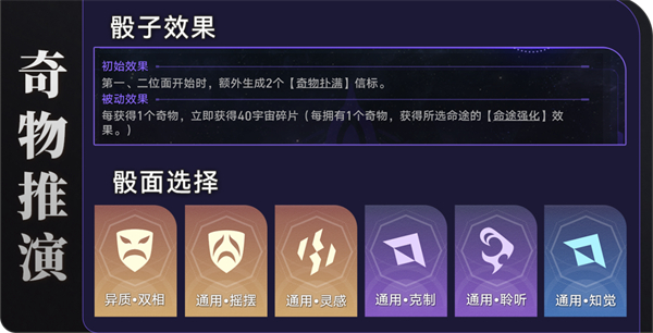 2。之后就会演绎出奇怪的东西。骰子是【异质双相】、【万能摇摆】、【万能启发】、【万能克制】、【万能倾听】、【万能感知】。