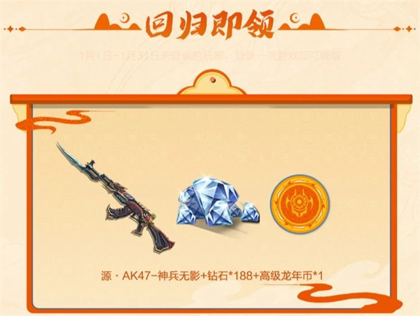 1。玩家只需在2024年1月登录游戏,每天完成任务即可获得龙年和龙年大四奖励。