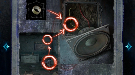 15。根据患者的时间和签名,按照图中所示的顺序打开左侧柜子上的机械装置,打开即可获得风扇。