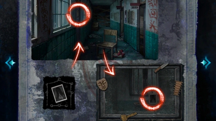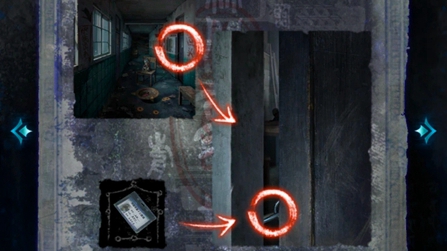 19。来到走廊左侧的门,将照片放入里面的相框中,门机关的排列线索就会出现。