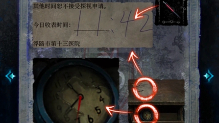 10。打开柜子拿到申请表,查看时钟的提示是11:42,用圆珠笔在公告板上写下时间。