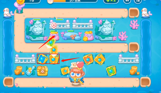 你可以使用卡片、闪电炮、毒针、冰锥、雷达和骰子来保卫萝卜4海之女。这个关卡是一个比较难的关卡,路线有点难玩。很多小伙伴不知道如何通
