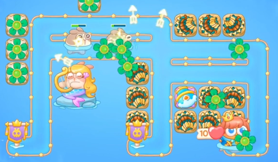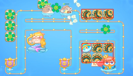 保卫萝卜4海之女,9级出现了一条美人鱼。美人鱼可以弹奏三个不同颜色的音符,并手动单击音符以合成相同的颜色。每种颜色都带来不同的增益。