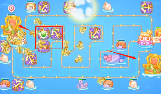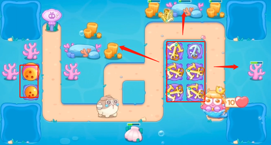 4。当我们来到场景2时,我们首先敲掉上面的礁石,继续放置锚,并在玩把戏的同时清理道具。