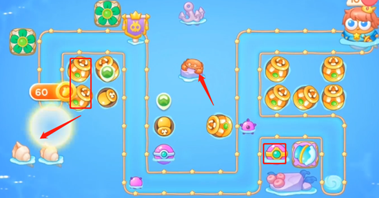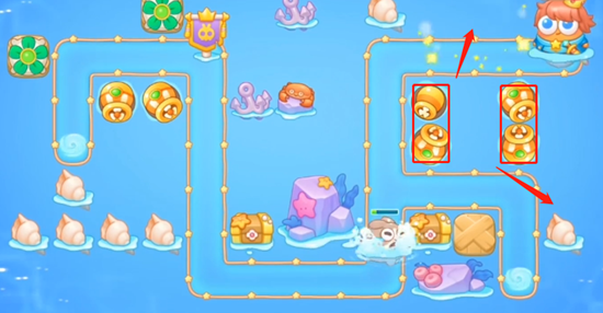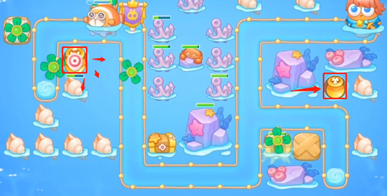 3。在清理完终点的道具后,继续清理出口处的道具,敲出宝箱并给他们鱼雷,并清除场上留下的所有道具。