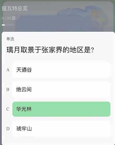 6、璃月的__是在张家界地区拍摄的?答案:C.林华光。