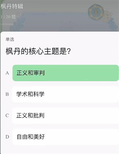 1. Fontaine的核心主题是什么?答案:A.正义和判断。