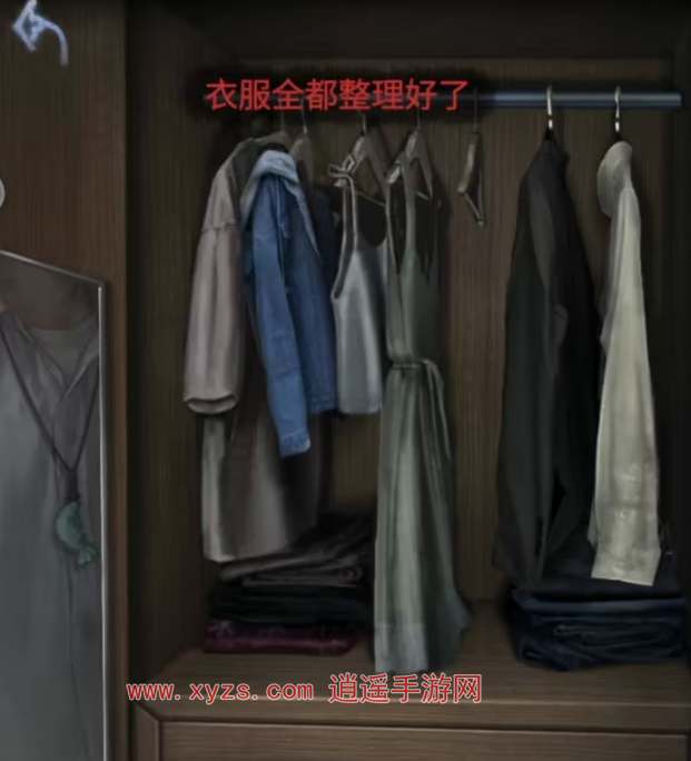 9、向左进入卧室和女朋友说话,放置衣服,使用走廊左上角木栏上的衣架晾衣服。
