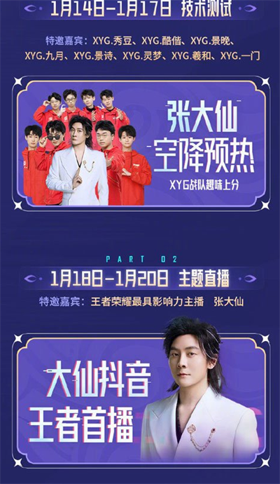 3、1月18日至1月20日为主题直播阶段,邀请游戏主播王张大仙连续三天直播;