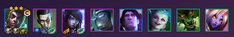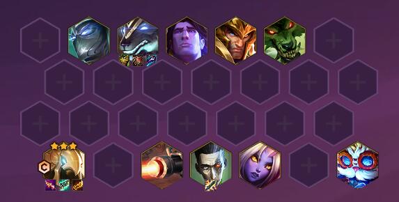 羁绊:4 祖安+ 3 巨蜥+ 2 要塞守卫+ 2 神谕者+ 2 枪手+ 2 法师