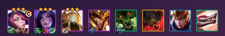4.第三阶段可以使用多种阵容。 Evelin 使用Zie 设备。你手里可以留一颗一星。卡特到了3和7后,来Zie跟场上的Evelin交换装备,然后挂掉。带着1星艾芙琳回去,剩下的就是去8星找奇亚娜了。