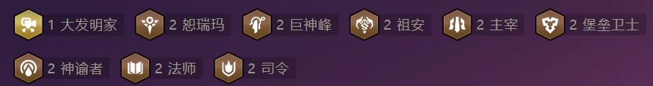羁绊:1大发明家+2恕瑞玛+2巨蜥+2祖安+2霸王+2要塞守卫+2神谕者+2法师+2指挥官