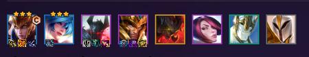 1、阵容:尼菈、沃里克、纳亚菲利、奎因、卡莎、亚托克斯、嘉文四世、阿兹尔、菲奥娜