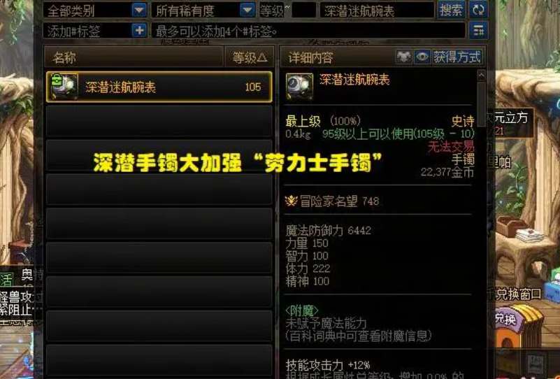 dnf劳力士手镯毕业完美词条是什么?劳力士表链指的是装备“Deep Trek Watch”。这件装备适用于神界版本的多种流派。以下是劳力士表链搭配条目的一些建议。想要了解和配置装备的玩家可以参考指南来选择合适的条目。