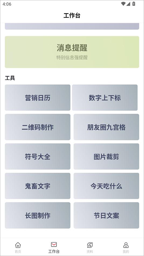 5.点击工作台即可使用各种工具
