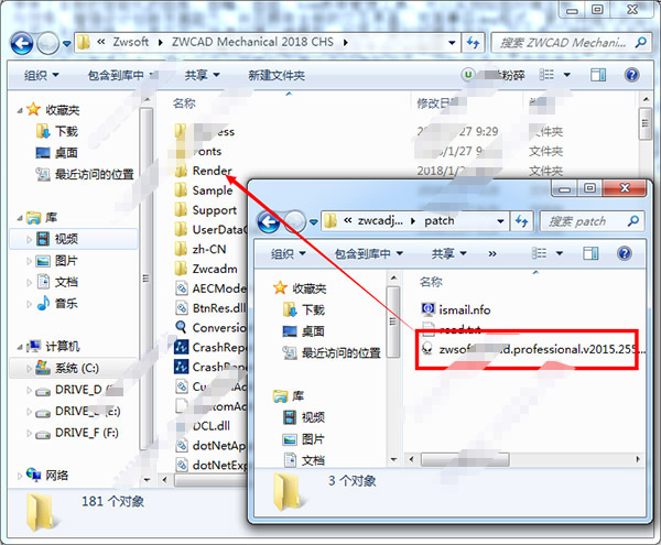 4、关闭试用窗口好后,先不要打开软件,回到数据包中将文件夹“patch”中的破解补丁“zwsoft.zwcad.professional.v2015.25578-ismail.exe”复制到软件的安装,目录中“C:\Program Files\Zwsoft\ZWCAD Mechanical 2018 CHS\Zwcadm\”