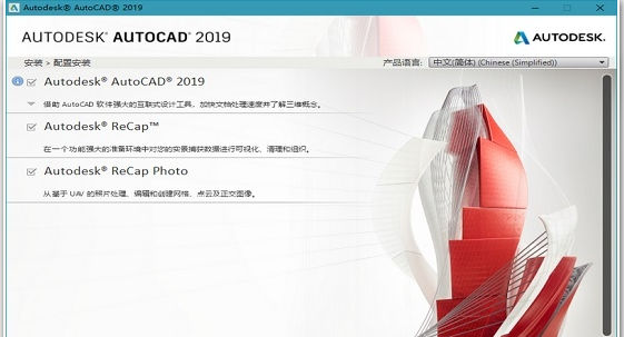 4、默认只安装autocad 2019,autodesk design review 2019可以根据自身的需要选择安装;