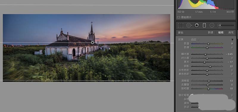 最后进行微调,渐变滤镜进一步压暗天空。