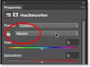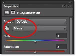 步骤4:将编辑选项从全图更改为黄色 色相/饱和度调整图层的控件和选项显示在Photoshop的“属性”面板中。默认情况下,色相/饱和度将均匀影响图像中的所有颜色。这是因为面板顶部附近的“编辑”选项设置是“全图”: