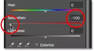请记住,牙齿自然会有一些黄色。如果将饱和度滑块一直拖到左边(值为-100),就像我在这里做的那样: