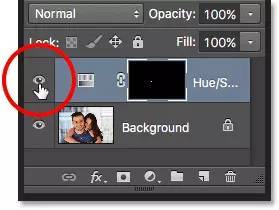 图像目前不会变化,但如果再次查看“图层”面板,我们将看到在背景图层上方添加了色相/饱和度调整图层: