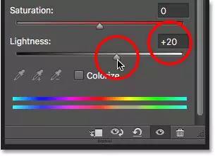 然后,单击“亮度”滑块,然后开始向右拖动。你进一步拖动到右边,牙齿会变亮。当您拖动滑块时,请留意您的图像,一定要保持自然。这样照片大约+20的亮度就很好: