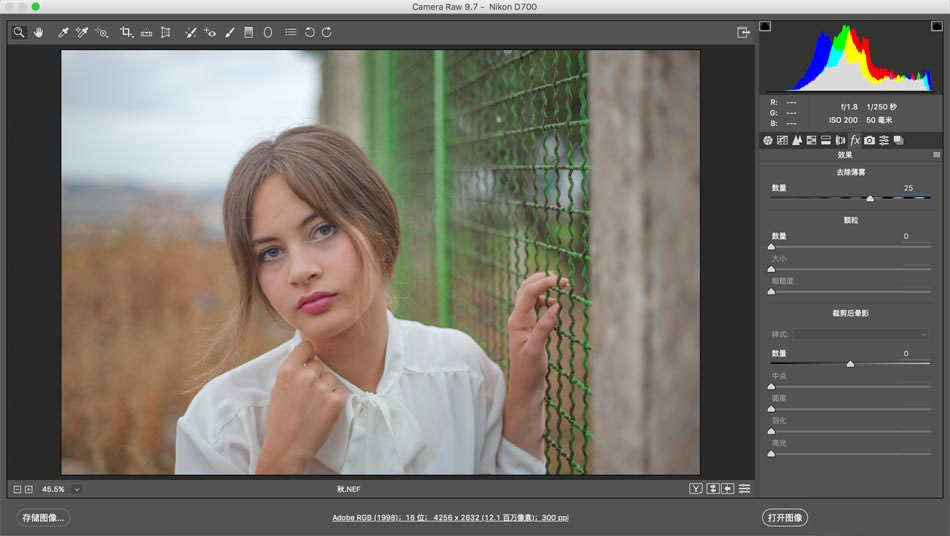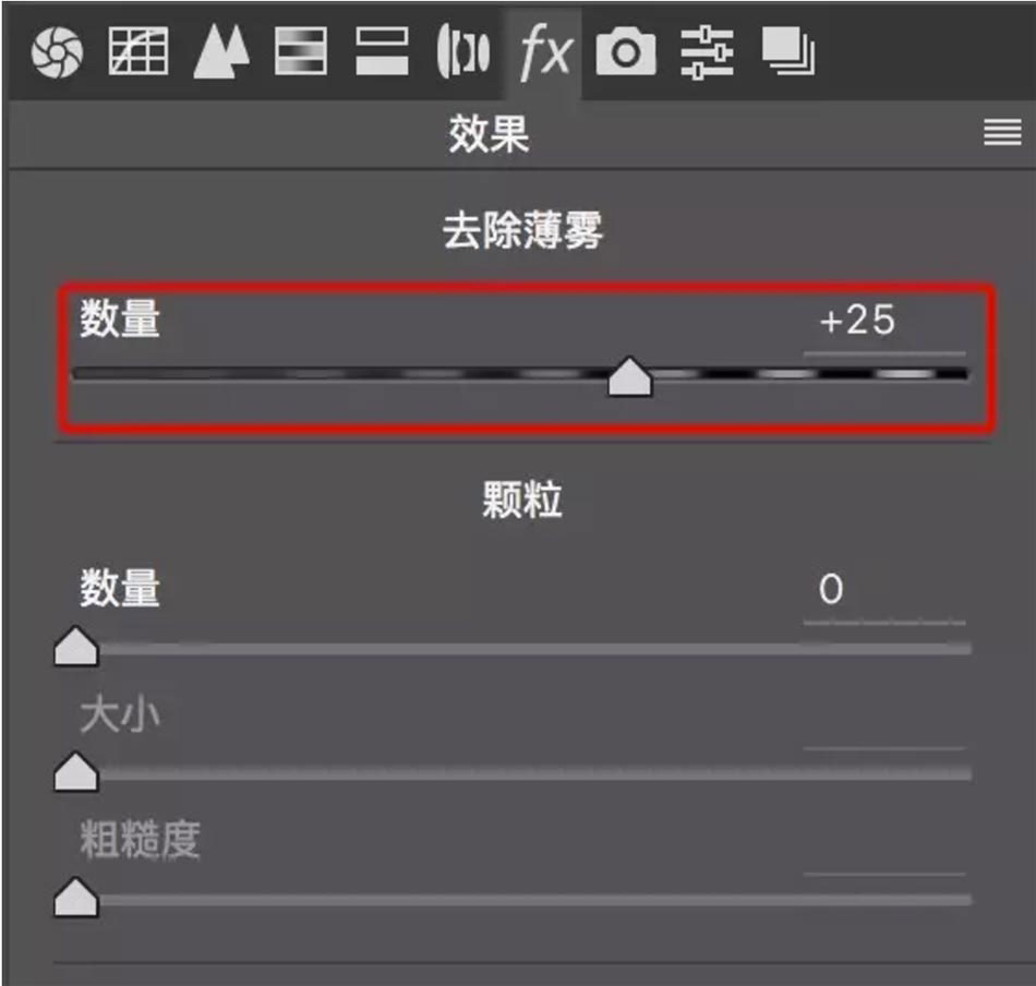 4、但是没关系,我们可以通过fx中去雾霾来追回一些细节:
