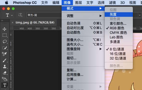 2、PS软件的色彩模式问题,那么我们只需选择图像-模式-灰度即可,操作步骤如下图所示: