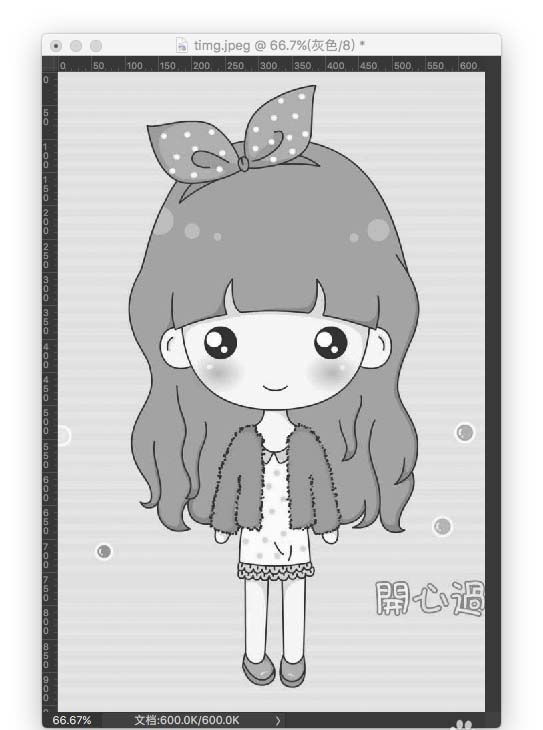 1、启动PS软件(假设PS软件的模式默认为RGB模式),首先来看看原来图片的色彩情况,如下图所示: