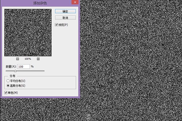 五、我们的图像现在已大致完成,现在我们可以增加一些特殊效果来使其看起来更加真实。新建一个空白图层,填充为黑色。单击滤镜>杂色>添加杂色,参数设置如下: