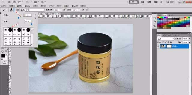 5、选择并设置画笔。单击“图层0”图层的“图层蒙板”,选择“画笔”工具 如下图: