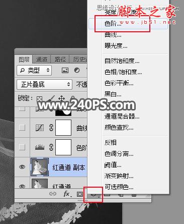 6、点击图层面板下面的创建新的填充或调整图层按钮,选择“色阶”。