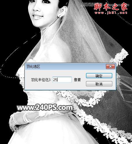 10、用套索工具勾出飘纱部分选区,如下图,并按Shift + F6 把选区羽化25个像素。