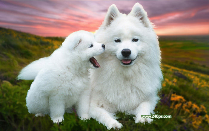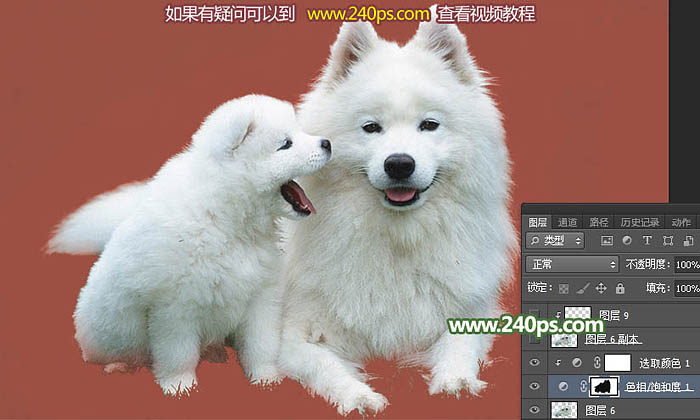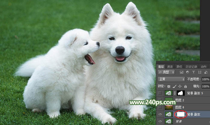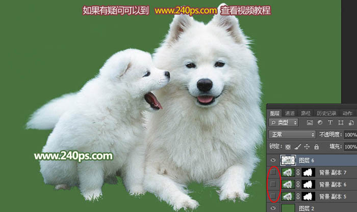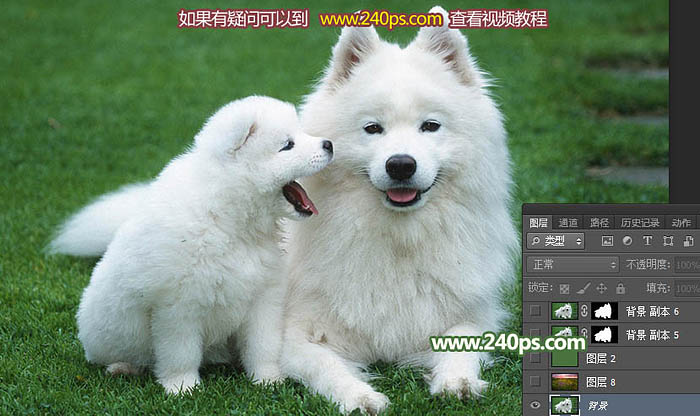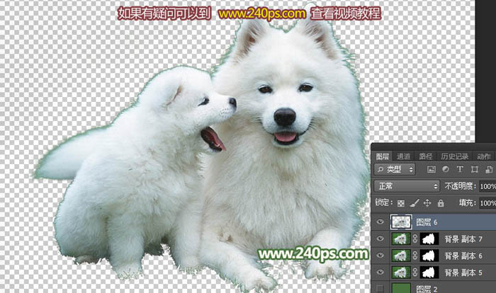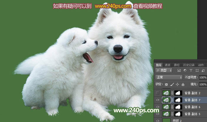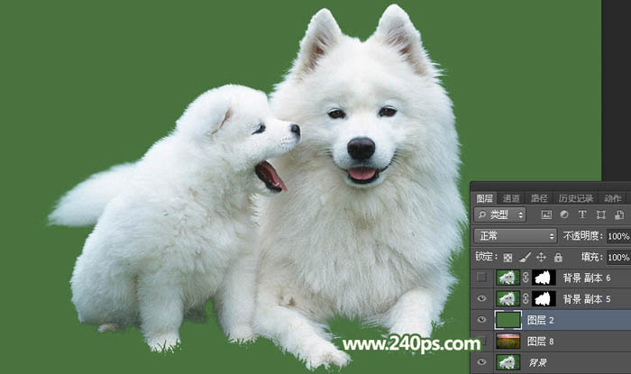 25、把添加蒙版的小狗图层复制两层,增加毛发的细节,效果如下图。到这里通道抠图部分完成。