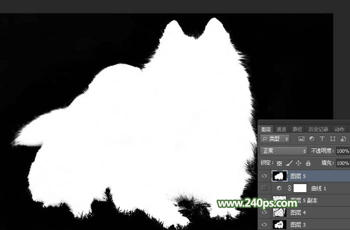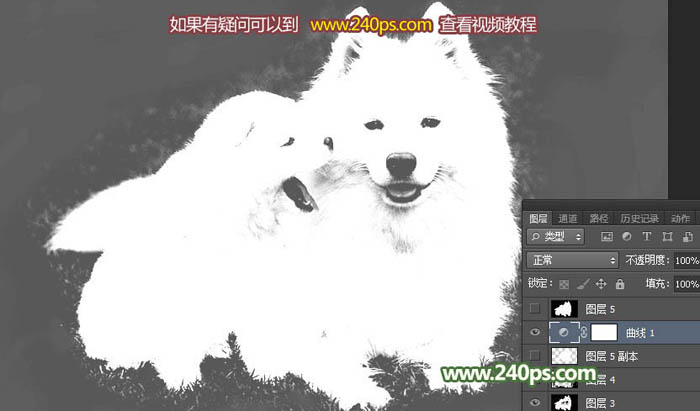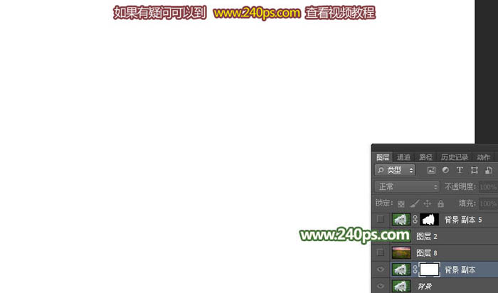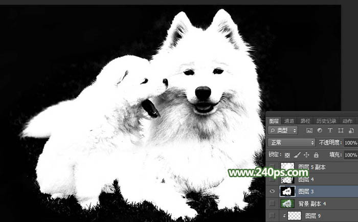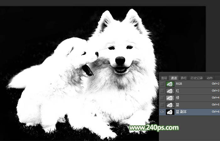 22、按住Alt键 + 鼠标左键点击背景副本图层的通道缩略图,得到白色的效果,如下图。这里的图层非常多,新手最好到240ps.com查看视频教程。