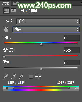 28、换背景色的方法还是用之前的色相/饱和度 + 可选颜色,这是本人原创的万能换色方法。先创建色相/饱和度调整图层,对绿色,青色进行调整,参数及效果如下图。