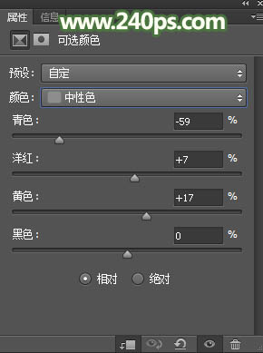 29、创建可选颜色调整图层,对中性色进行调整,把颜色转为自己想要的颜色,确定后按Ctrl + Alt + G 创建剪切蒙版。
