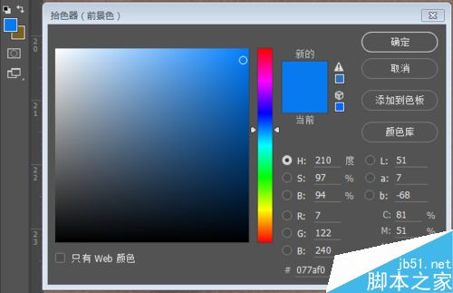 9.为更加精准检查所抠的图是否满意,新建一个图层置于美女背景图层2下方,选择键盘快捷组合键Alt+Delete填充一个#077af0前景色,反差对比度大,便于观察;