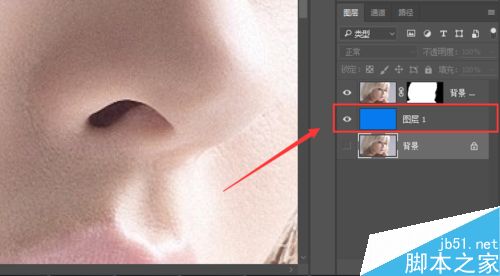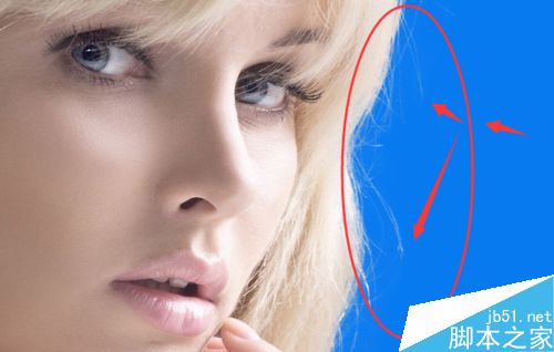 10.在高对比度的蓝色背景承托下,放大人物局部,主要观察细微的头发丝,是否完整没有杂色的抠图保留下来,就现在结果,基本满意;