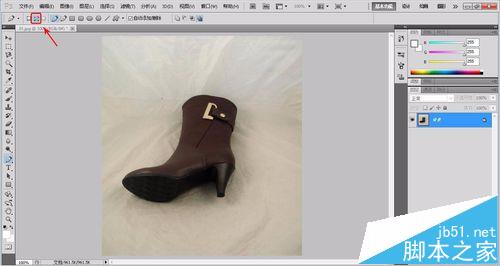1、打开你需要进行抠图的文件,这里小编用的是鞋的图片,因为要抠的这张图片的周围都比较圆滑, 比较容易进行抠取。