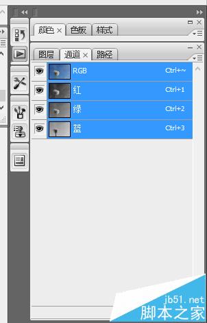2、然后点击通道,选择一个对比度最强的通道(我选的红通道)。