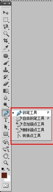3、点击钢笔工具,此时摁住鼠标不放,会出现一个小对话框,如图所示,只需选择第一个“钢笔工具”即可。