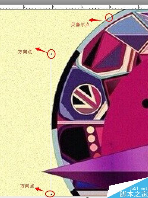 4、在所需抠图的对象边缘随意一处,作为起始点,然后在另一处边缘,点击鼠标左键不松手,这时即可调整钢笔路径的走向,如图所示: