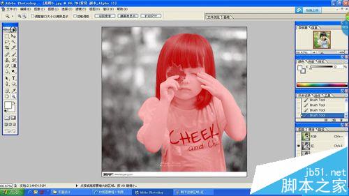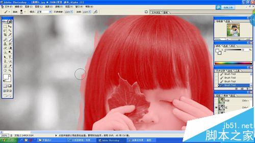 9、靠近需要部分与不需要部分边界的时候,可适当减小画笔直径,并放大图片。边界模糊的地方,可在通道中点击红色可见,或用Ctrl+1让图像隐约可见,这样就比较好区分了,继续涂白或涂黑。直到隐藏红色后,所有需要的部分被涂为纯黑色、不需要的背景被涂为纯白色为止。