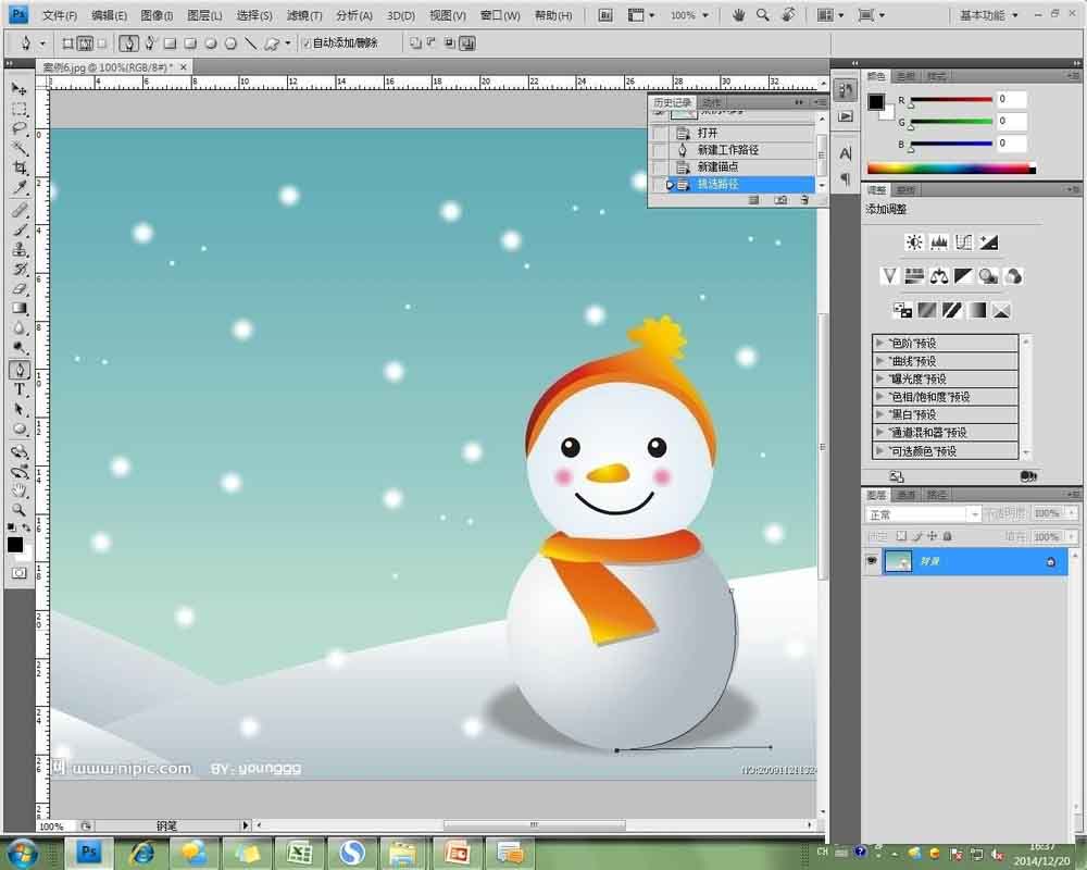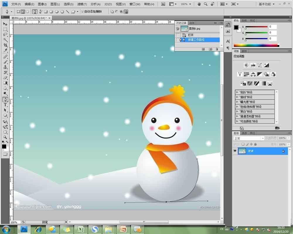 3、应用 钢笔工具沿着要抠取的对象边缘描边。钢笔尖每在图像上点击一下就会新建一个锚点,当新建了一个锚点时,此时按住鼠标左键不放,拖拽能够直接拖拽出圆弧,此种方法很适合抠取圆形的图形。