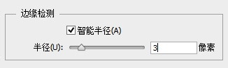 5、在开出的属性面板中,勾选智能半径,半径大小按需要删除部分复杂化而定,越细致的图片可以调高一点来达到比较精确的选择。