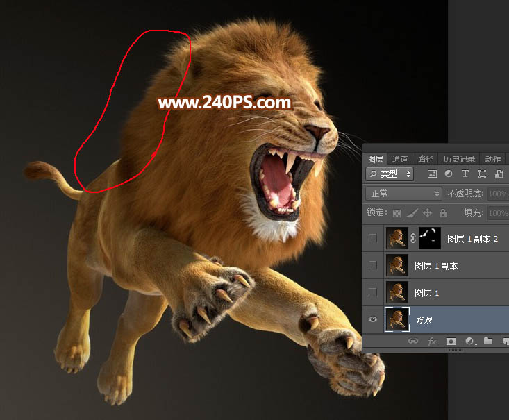 1、观察素材。打开原图素材,我们先观察一下素材,红圈位置部分毛发细节不是很明显,前期需要增强一下。